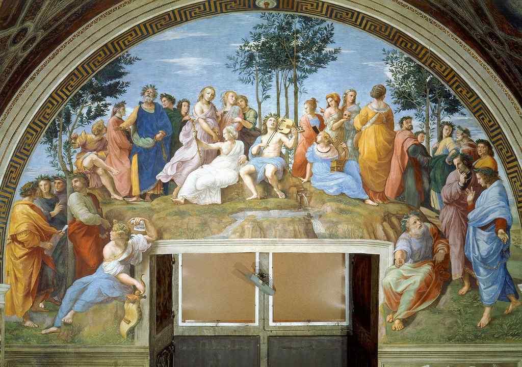 「署名の間」:「キリスト教礼賛」「アテネの学堂」「パルナッソス山」他