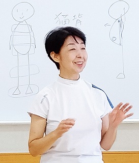 毎回、初めは椅子に座って理論を聞き、姿勢チェック、必要なエクササイズやケアの実践をし、後半は歩行動作を実践、指導します。姿勢や歩行動作は個別にアドバイスをいたします。