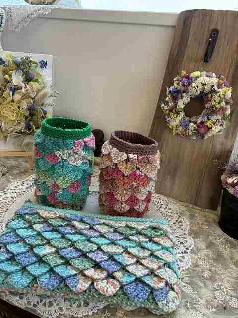 ニット小物/コースター、ポーチ、バッグ、マフラー、帽子など