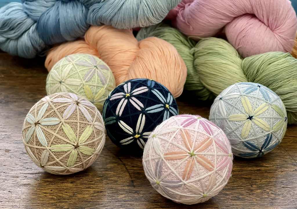 その素朴さは一綛一綛、草木染めした木綿糸だからこそ。昔の伝承技法で心を込めて作る美しく温かい雰囲気の手まりです。