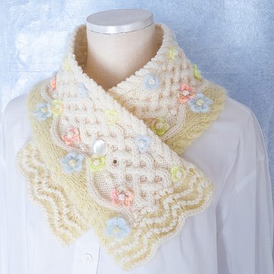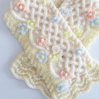 こちらのミニマフラーはかぎ針で編んだお花のモチーフを付けて完成です。