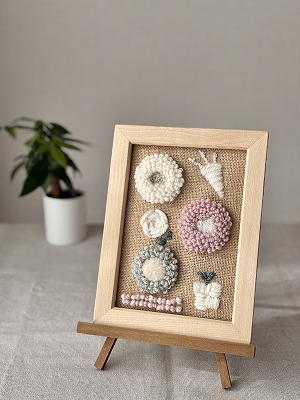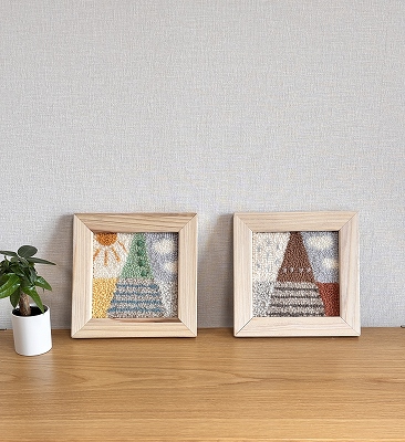 毛糸を通した専用のニードルを使って、塗り絵をするようにぷすぷすと刺して作品を作ります。
