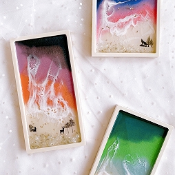 クリアレジンを使って、美しい冬空アートをプレートに作成しましょう。まずは、お好きな色に着色するところからスタートします。そして、キラキラなデコレーションでオリジナルの作品を完成させます。