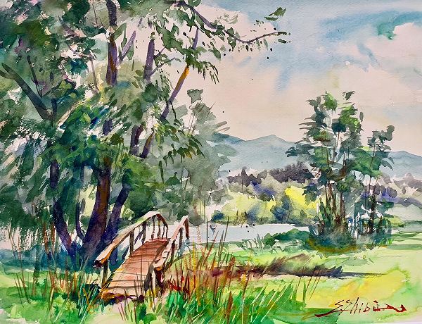 柴崎春通さんと楽しく描く透明水彩2/22「フラット塗りで 早春 緑あふれる風景」