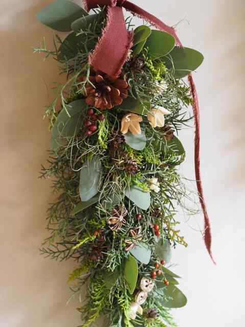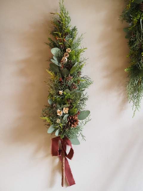 フレッシュの針葉樹から作る縦長のガーランド。
