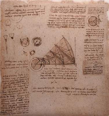 図2、レオナルド・ダ・ヴィンチ、アトランティコ手稿 ミラノ、アンブロジアーナ図書館