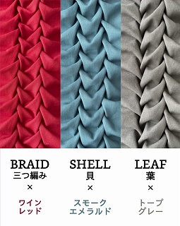 ラティススモッキングは、布の裏側から格子状に縫い縮めることで、表面に立体的な模様を浮かび上がらせる手法です。製図によって仕上がりが変わり、まるで彫刻のような美しさが楽しめます。今回は既製のエコバッグに、BRAID(三つ編み)・SHELL(貝)・LEAF(葉)の中からお好きなパターンを描き、スモッキングして仕上げます。