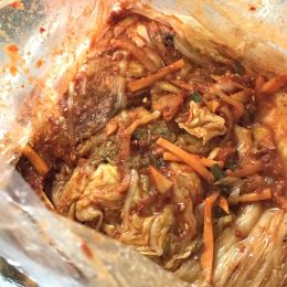 お漬物の中でもとびきり乳酸菌の多いキムチ。なかでも基本となる白菜キムチはそのままでも、また料理につかってもおいしくいただけます。キムチの素ヤンニョムをご一緒に作って、旬の白菜にぬりこみ、仕込んだものをお持ち帰りいただきます。キムチが発酵し、旨味が増すさまをお楽しみください。韓国の友人から教わった特別な味をアレンジし、食べやすくした白菜キムチです。