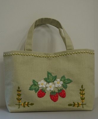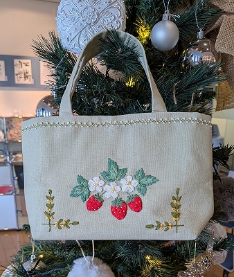 この2回体験では、「いちごのミニトートバッグ」を作ります。