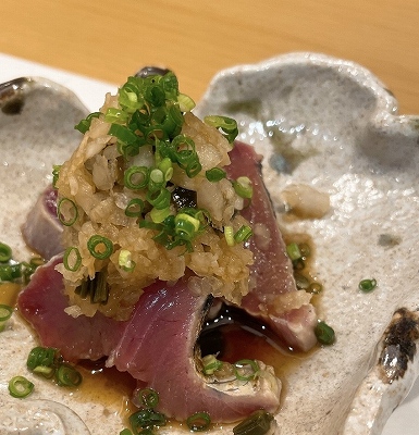 大阪のオフィス街、本町にある隠れ家的な割烹 「阿波座 なが友(ながとも)」。旬を取り入れた華麗で本格的な和食創作料理でとてもリーズナブル。店主は、ミナミの名店「和洋遊膳 中村」で料理長を任された実力、2017年の開業以降、得意分野の魚の素材の目利きと火入れにこだわる。野菜やジビエを使ったお椀物も抜群。食材の旨味を存分に引き出し、心も温まる一品が好評。夜だけの営業のところ、無理をお願いして、ランチに夜のおまかせを提供していただく。