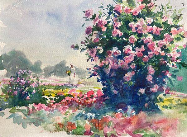 柴崎春通さんと楽しく描く透明水彩3/22「にじみの効果で 春 花いっぱいの景色」
