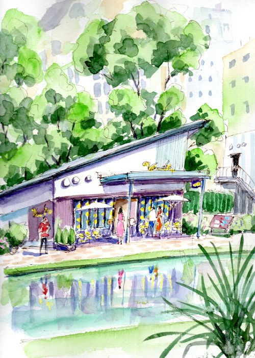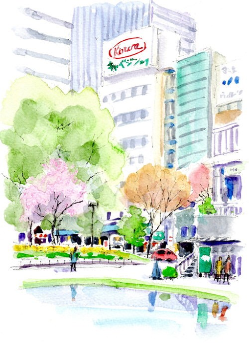 透明水彩の使い方を学びながら、旅先で素早く描くコツを学べる屋外スケッチ講座です。