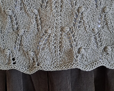 前後で模様が異なるため編むにも着用するにも飽きずに楽しめます。