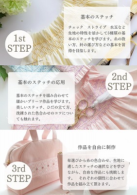 これからスモッキング刺繍を始める初心者の方のためのクラスです。基礎からじっくりスモッキングの技法を習得します。