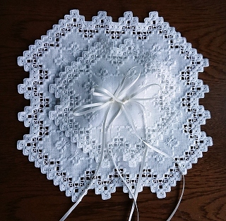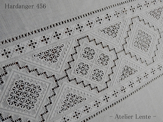 ハーダンガー刺繍はノルウェーのハーダンゲル地方が発祥の繊細で美しい刺繍です。布目を拾って刺した刺繍の中の布をカットし、織り糸をさまざまなステッチでかがります。色やステッチの組み合わせによって清楚にも、豪華にも仕上がりますので用途に応じ、色、形を自分の好みに合わせてアレンジする事も出来ます。