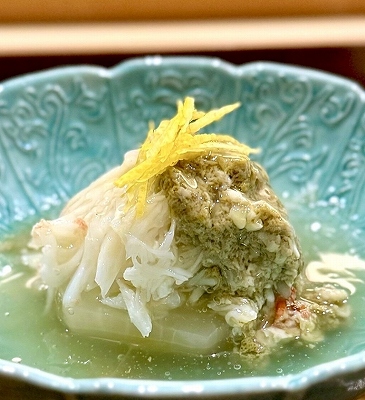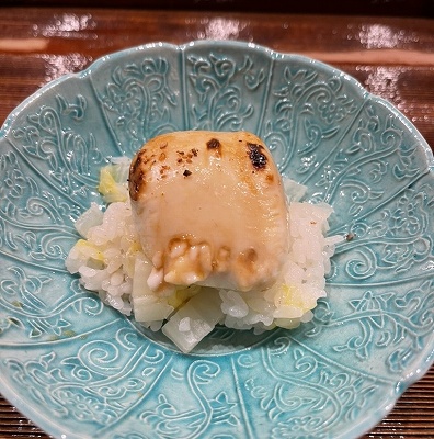 店主は三重にある高級ホテル「汀渚 ばさら邸」で長年料理長を務めた料理歴35年の実力派。2024年8月開業で2026年ミシュラン★一つ獲得。茶の湯に通じる美意識で格別な日本料理を堪能できる。店内は一枚板のカウンター、建築家が設計した数寄屋造りの凛とした空間でこだわりの檜の香りが漂う。メニューはおまかせコース。絶品は備長炭を使用した焼き料理で、ぜひ味わっていただきたい。今後予約困難になる店です。
