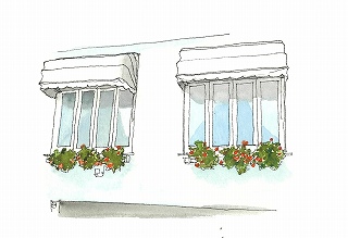 ・建物と空、建物と緑など人工物と自然要素の組み合わせの塗り