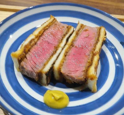 2023年6月にオープンした「宮川町ほった」は、カウンター席で職人の技を間近で感じながら食事を楽しむことができる。店主は、祇園さゝ木で16年勤め上げて独立。「ひがしやま司」の大将とは同学年。カウンターの目の前で、大将が調理をすべて披露する。伝統的な和食の魅力を大切にしながら、現代のテイストを取り入れている。カウンターは、樹高40メートルにもなるアフリカ中部、コンゴ産の「アサメラ」。京都らしい和のテイストから始まって、中華風のメニューや名物のビフカツサンドなど、お酒が進む。ビフカツサンドは絶品。