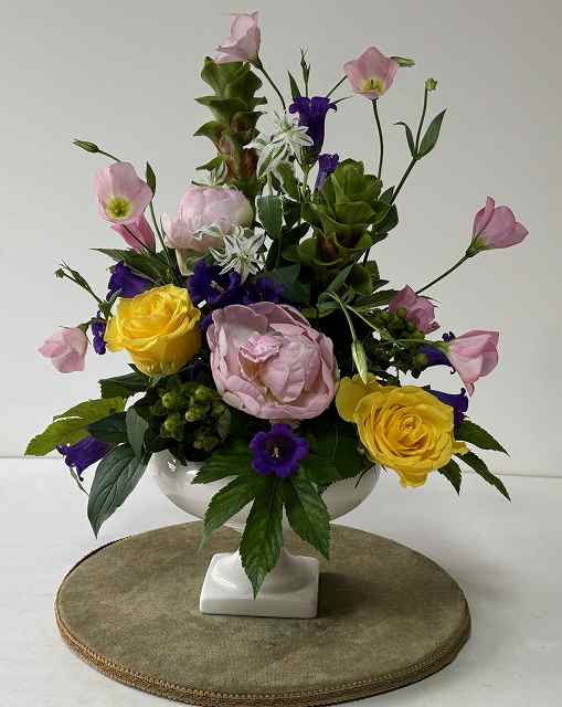 初級(1年以上)を修了された方は専科へ進めます。専科はさらに進んだ花の形応用TPOに合わせたアレンジを学びます。専科(1年以上)を修了されて希望される方は免状(ベーシックコース修了証)が交付されます。
