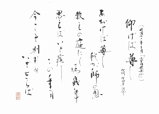 『暮らしの書道』では、くらしの中の用の美を手懸りとして、日本の文化の極みとしての“書”を自らの豊かな人生の中で楽しみ味わい深いものとしてゆきたいと思う。