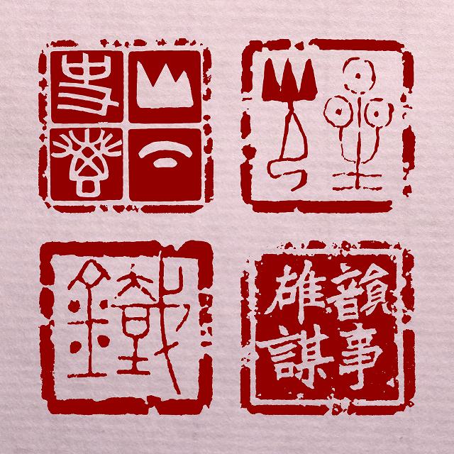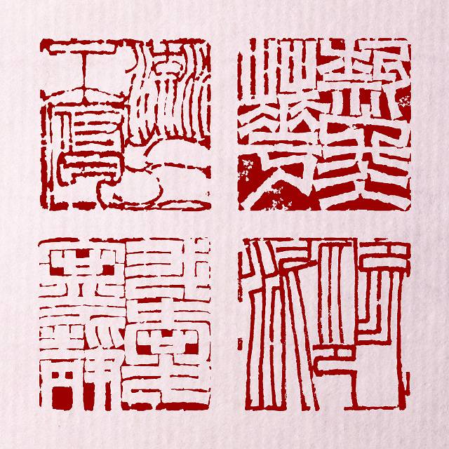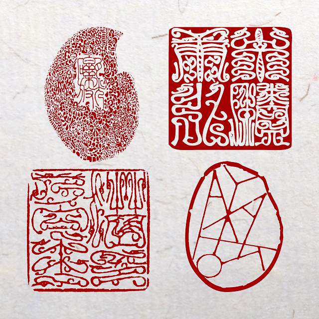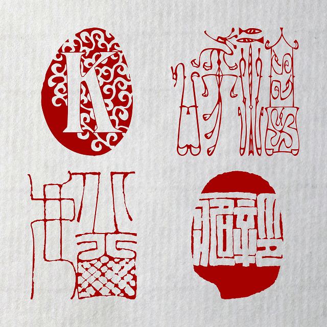 古典に則った落款、篆書体以外の書体の漢字、仮名から、アルファベット、ヒエログリフ、文様まで―。