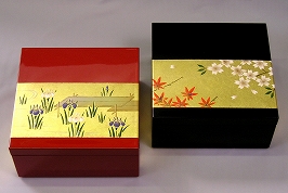 漆で絵柄や文字を描き、その上に金や銀の粉を蒔くことで美しい模様を描き出します。